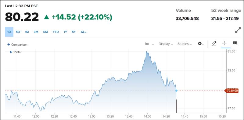 Shares of Coinbase Global Inc. rose by 25% to hit $80 on Wednesday while Bitcoin's (BTC) price breached the highly coveted $24,000 mark.
